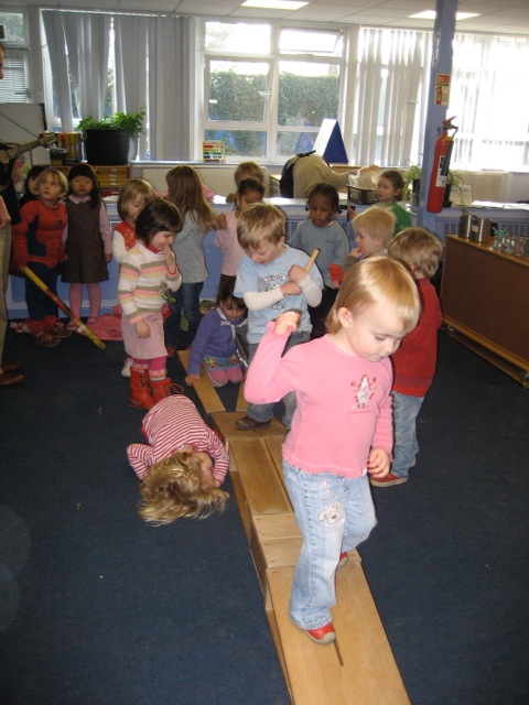 A great connector A group of three year olds are learning a sequence of words that make a narrative. They are developing their vocal skills, varying pitch, volume and timbre with increasing subtlety. At the same time they are performing a series of actions as they move about in space, co-ordinating their own movements and sounds with those of the other children in the group. You guessed it, they are playing Ring-a-Ring-a-Roses. Music making has an essential part to play in meeting childrens needs in early years settings. It connects the different faculties within us, emotional, physical, and intellectual by calling them all into play simultaneously. It also connects us with each other. All the rapport building things we do, mirroring, falling into step, taking turns in conversation and so on are present in a concentrated form when we make music (1). Children who don’t develop these skills will be severely disadvantaged throughout their education and into adult life. A significant number arrive at playgroups, childminders, nursery schools etc. needing more stimulation than they have been getting and it is these same children who need to make friends and feel part of the group. So let’s get practical. Here is a detailed look at something that will really create some joined up thinking. Warming up - waking up all our parts and getting them to work together. “Banana Splits” (2) Bananas bananas clap clap clap Bananas bananas flap flap flap Bananas bananas click click click ( if you can’t click - pretend ) Bananas bananas flick flick flick Bananas bananas bump bump bump ( waggle bottom from side to side ) Bananas bananas jump jump jump We know that setting up a rhythm is one of the most efficient ways of getting a group co-ordinated and focussed on a leader. This rhyme is easy to teach because, there is initially only one word to learn, the leader can demonstrate the action while saying the bananas part and the bumping and jumping is fun. When we have done it a couple of times and everyone is smiling, we take our imaginary banana, peel it and eat it, tasting and feeling the fruit go down into our stomachs. Engaging the visual and sensory imagination enriches the activity and is generally is a “good thing”. It can be used with all kinds of songs and stories. We now know that it is possible to develop muscles and skills by visualising (3) and that this kind of imagination is a powerful tool for things from pain management to planning a performance or conversation. It is a life skill we all have and is well worth developing. The neurologists tell us that what happens in learning is that networks of connections are made in the brain on the principal that neurones that fire together wire together. These connections are not confined to the brain in our heads but extend throughout the body. One of my favourite pieces of research, underlining the connection, is one where some people where asked to nod while listening to a recording containing information mixed with opinions. They were told that they were testing their headphones. Those who had been asked to nod while listening agreed with the statements significantly more afterwards than the control group who weren't (4). Silence is golden Everyone is now on board so we can start to really focus our attention on working together by introducing not more noise but some silence. The researchers tell us that passive stimulation does not change the brain (5). We throw away the skin. Now there are no bananas. We perform the rhyme again but this time the “banana” is silent. You can get a great concentration on the task and sense of group achievement by using silence. A really good collective sense of timing is established. Our rapport making skills are working overtime. Any song or rhyme can be performed silently. Many songs have the pattern where one more word is left out each verse like Heads Shoulders Knees and Toes. It does sometimes seem as if there are a limited number of patterns and they are just recycled and recombined into different songs. Patterns The universe is a pattern making place. Galaxies form themselves in to beautiful spirals that are echoed on a series of different scales in cloud formations, whirlpools, the forms of shells and pollens. Sand on a drum head that is vibrated at a given frequency will form geometric patterns and when you go on holiday you find on your return that the garden has organised itself into arrangements that you could not have achieved by intervention. We are pattern creating and perceiving animals and will turn those cloud formations into dragons or cathedrals or notice a face peering out at us from a stone on the beach. Pattern recognition is so integral to our perception that we cannot see with out them. We see through them. People who have been blind since birth have to learn the meaning of the patterns of light and shade detected by their eyes before they can tell what they are looking at. For a thorough exploration of this and other brain research and what it means to us see “Human Givens - A new approach to emotional health and clear thinking” (6). Similarly some people who have become suddenly blind continue with an illusion that they can still see because patterns continue to be evoked in their brains independent of the stimulus of visual input (7). Artists (including musicians), and scientists (including mathematicians) are very much concerned with patterns and experiment with them in a conscious way. In their excellent “How Babies Think” (8) Gopnik Meltoff and Kuhl suggest with a wealth of fascinating evidence that children behave like scientists, forming a hypothesis (pattern) and testing it out. This is also the behaviour of the artist, a musician takes a pattern (a melody, scale or rhythm) and sees what can be done with it. One of the reasons that working with young children is such fun is their amazing sensitivity to the patterns you present them with. You only have to sing 